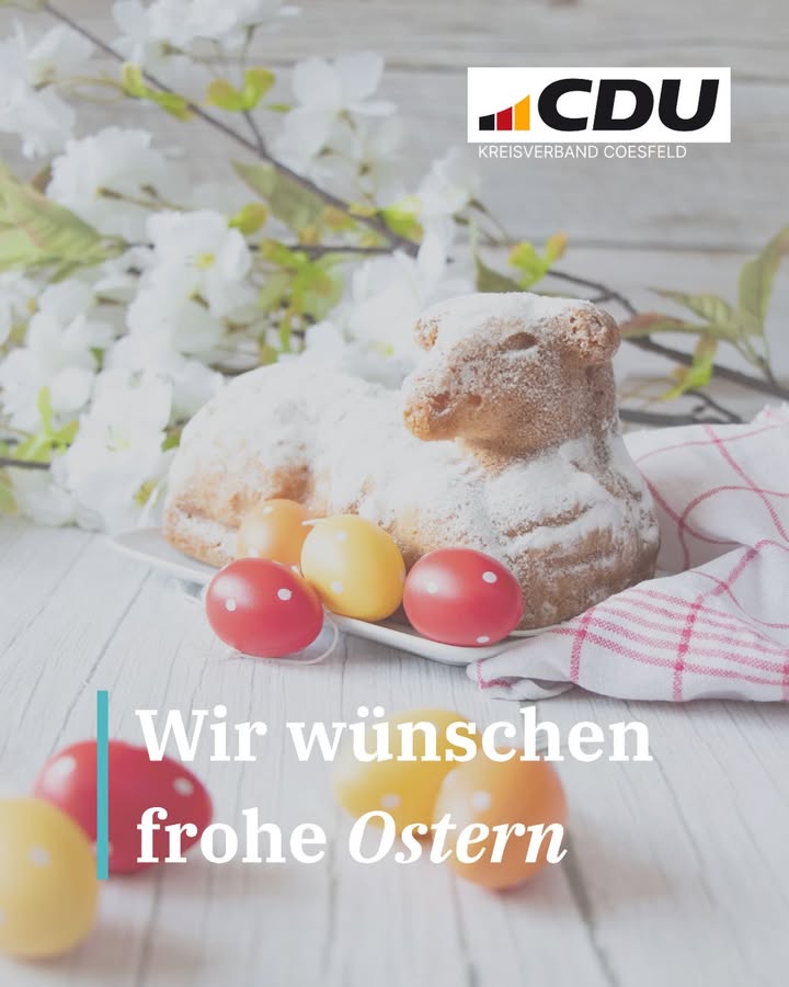 mehrFrohe Ostern! 🐣🌷Wir wünschen Ihnen und Ihren Familien ein gesegnetes, friedliches und hoffnungsvolles Osterfest. Möge diese Zeit neue Kraft, Zuversicht und Gemeinschaft schenken. 🐰Genießen Sie die Feiertage ? wir freuen uns darauf, gemeinsam mit Ihnen unsere Heimat weiter zu gestalten. 🤝🏻#Ostern #cdu #cducoe #feiertage