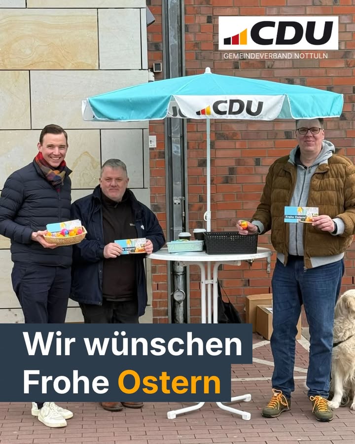mehrTradition, die verbindetTraditionen sind mehr als Gewohnheiten ? sie sind ein Stück Gemeinschaft, das wir gemeinsam lebendig halten.Deshalb waren wir heute wieder in der Dülmener Innenstadt unterwegs und haben Ostereier verteilt. Es sind die kleinen Gesten, die ein Lächeln schenken und Menschen zusammenbringen.Für alle, die wir heute nicht erreicht haben: Wir sind am Samstagmorgen noch einmal vor Ort!Und allen, die wir nicht persönlich treffen konnten, wünschen wir schon jetzt ein frohes und gesegnetes Osterfest im Kreise Ihrer Liebsten.Ihre CDU Dülmen#Dülmen #CDUDülmen #Ostern #Gemeinschaft #Tradition #FürDülmen #Miteinander #Ehrenamt #VorOrt #Zusammenhalt